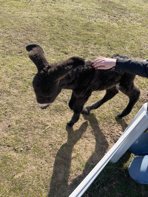 Obwohl mich meine Pollenallergie sehr plagt, tut mir der Aufenthalt in der Natur und die Nähe zu Tieren aktuell sehr gut. Es entschleunigt und lenkt mich von meinen rasenden Gedanken ab, die mich oft quälen und lahm legen. Im Naturpark Arche Warder hier in Schleswig Holstein unweit von Kiel, durfte ich einen 5-Tage alten Esel streicheln. Der kleine Quentin war noch wacklig auf den Beinen aber das hielt ihn nicht auf über die Wiese zu springen und sich Streicheleinheiten von den Besuchenden abzuholen. Mama Esel war aber immer ganz nah und hat aufgepasst. ;-)